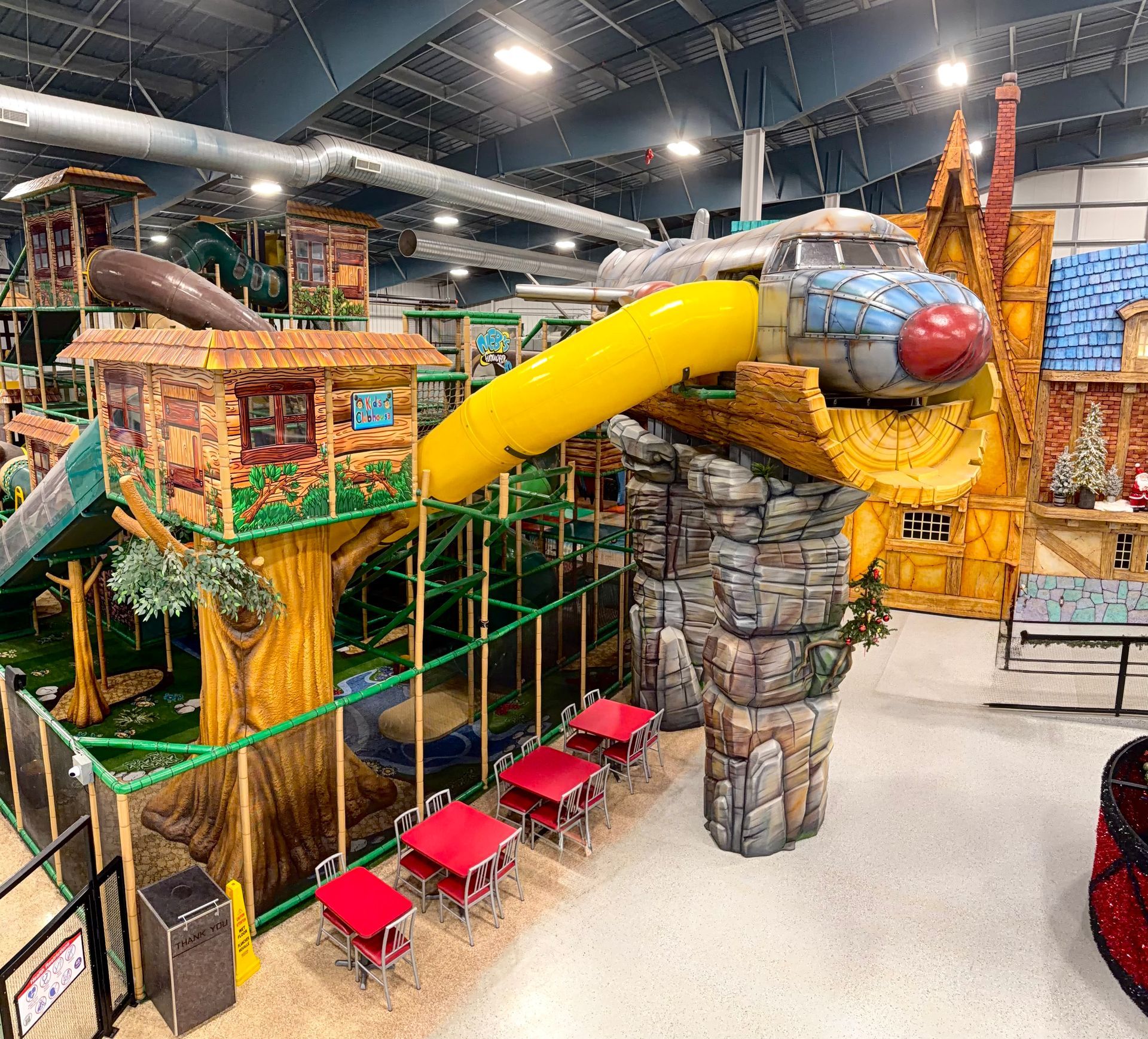 Get ready to explore one of the largest indoor playgrounds in Canada! With over 8 thrilling slides and endless obstacles, adventure is waiting around every corner. Climb your way through the inside of a towering tree, cross the rope bridge, and discover the hidden treehouse clubhouse. Don’t miss the bear head lookout for a one-of-a-kind view!